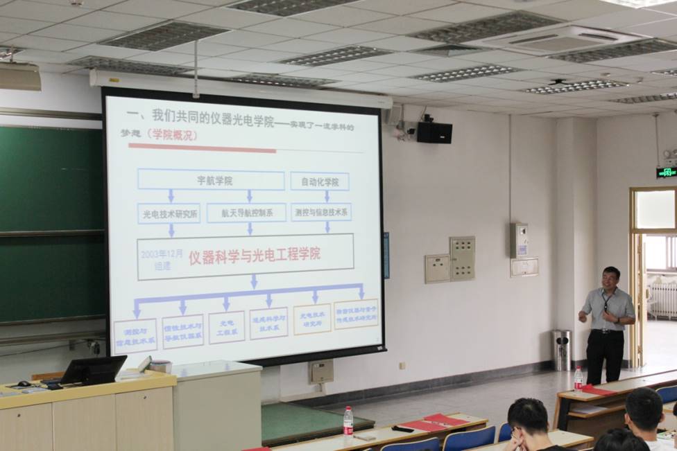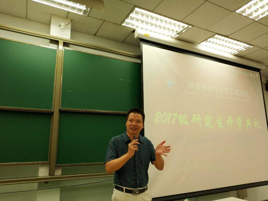 仪器科学与光电工程学院党委书记赵慧洁教授首先致辞,代表学院领导向各位新同学的到来表示欢迎,希望同学们能珍惜在学校的时光,专心科研、勇攀高峰。学院副院长钱政教授致辞,通过“抓兔子的小故事点明科研生活要点,希望同学们努力做好科学研究、智商与情商兼得。随后,在校研究生代表刘纪勋同学代表全体在校研究生对新同学的到来表示欢迎,并祝愿各位新同学能够有一段美好而又难忘的研究生经历。研究生新生代表王云帆同学代表学院所有新生表达了对于研究生生活的美好憧憬,以及对追求真理的坚定信念。