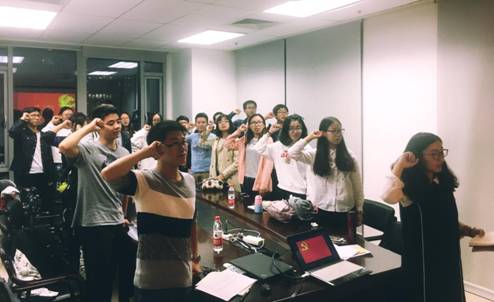 最后,党员们在党支部书记王舒同志的带领下,面向党旗,重温入党誓词,至此,SY17172党支部第一次党员大会圆满结束。没有规矩,不成方圆,SY17172党支部在大会上明确了党员责任,加强了党员的带头意识,提高了党支部凝聚力,相信SY17172党支部一定会发展得越来越好。