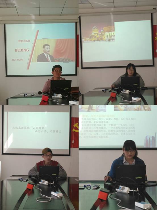 在徐岳同志的抛砖引玉之后,张潇阳、郭晓彤、元程琪、闫可心等四位同志也以“砥砺奋进的五年”为主题分别介绍了自己的家乡北京、哈尔滨、青岛、石家庄等四个地方这五年来的巨大变化,尤其是元程琪同志通过最近热播的央视纪录片《还看今朝》讲述了自己身为山东人的自豪,并且生动的介绍了山东在这五年中发生的巨大变化,人民生活变得更加幸福,人民的精神文明建设也十分完善。