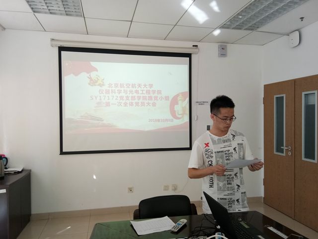 10月8日下午,仪器科学与光电工程学院SY17172党支部学院路党小组在新主楼B828进行了本学期第一次全体党员大会。本次会议由党小组组织张吉主持召开。与此同时,SY17172党支部沙河党小组在沙河校区召开党小组会议。