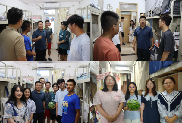 8月24日下午,仪器科学与光电工程学院党委书记雷晓锋、专职辅导员卢阳,学院2023级辅导员张倩倩、周梓琪来到学生宿舍为同学们送上清凉解暑的西瓜,对同学们的学习生活表示关心。雷晓锋书记与同学们亲切交流,深入了解同学们的状态,关心同学们的住宿情况、学习规划、选课安排等,同时对同学们在学院的学习生活提出了期待,鼓励同学们尽快适应新环境,积极融入集体。