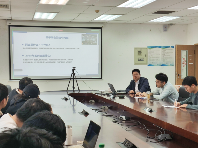 3月20日下午,仪器科学与光电工程学院学生党支部学习日集体备课暨学生党支部书记联席会在新主楼B座707教室和杭州白马湖4号楼804教室两地同步开展。此次活动由马克思主义学院张超老师担任主讲人,仪器光电学院党委副书记冀赵杰老师、专职辅导员巨熙杰老师出席,学生党支部书记、支部委员、党建中心干事参加,学习日集体备课的核心内容聚焦于2025年全国两会相关内容,旨在让各党支部骨干深入领会两会精神,更好地将其融入到学院党建工作与学习科创实践中。