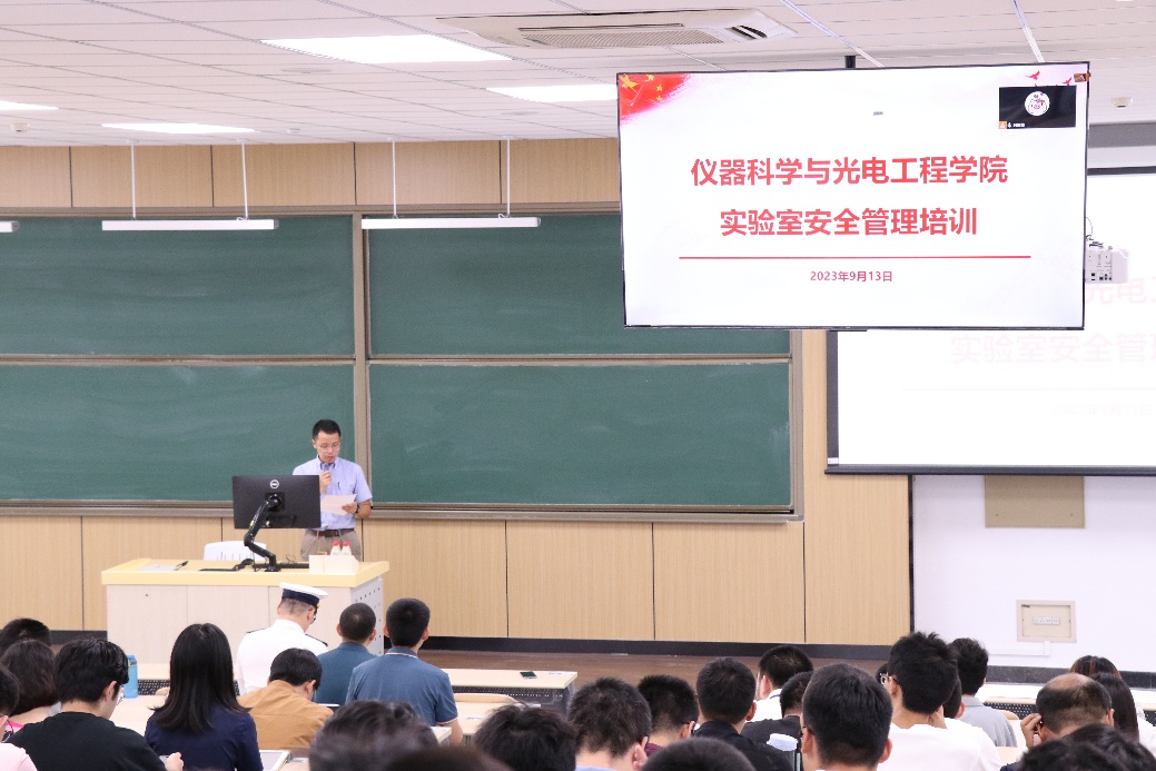 为进一步增强师生消防安全意识,普及消防安全知识,9月13日下午,仪器科学与光电工程学院实验室安全管理培训在学院路校区主M楼101教室成功举行。各系所安全员、各实验室安全负责人,以及新进研究生近200人线下参会,其他师生共100余人线上参会。
