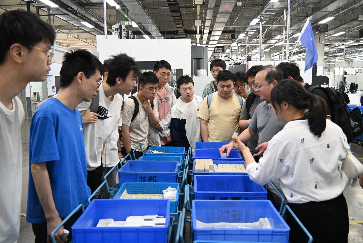 随后,同学们进入产品装配车间,企业导师深入浅出地讲解了生产线的设计用意——一个员工即可完成从装配到测试的工作。