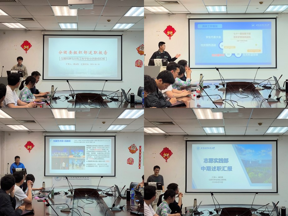 为更好了解各学生组织的工作进展,解决现存问题,明确未来工作方向,并帮助学生骨干更好地掌握工作方法,仪器科学与光电工程学院于2024年4月18日于新主楼B707举行了分团委学生组织述职交流培训会。学院分团委书记卢阳,专职辅导员肖皓文,兼职辅导员田若辰、周鹏、宋子睿以及各学生组织部长和干事代表参加本次会议,共同就学生组织工作展开深入交流和探讨。