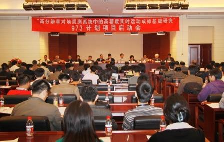 怀进鹏常务副校长在欢迎辞中对各级领导及各位专家对项目给予的大力支持和帮助表示衷心的感谢,向项目组全体成员表示了最衷心的祝贺和诚挚的感谢。他表示,在项目执行过程中,学校将为项目的开展提供全力支持,为了加强项目的协调和管理,将成立项目管理办公室。两院院士、武汉大学李德仁教授代表973专家顾问组讲话,他认为该项目紧扣国家重大需求,在高分辨率对地观测领域具有重要意义。科技部彭以祺副司长代表科技部讲话,他高度评价认为:该项目集中了国内相关领域最优势单位,产学研强强联合,组成了国内最高水平的科研队伍,同时他也对项目组提出了希望和要求。项目首席科学家、我校房建成教授代表项目组全体成员作了项目启动报告与工作布置。启动会期间,还为项目专家组和项目总体组成员颁发了聘书,并邀请李德仁院士、刘先林院士、林宗坚教授做了三场高水平前沿学术报告。