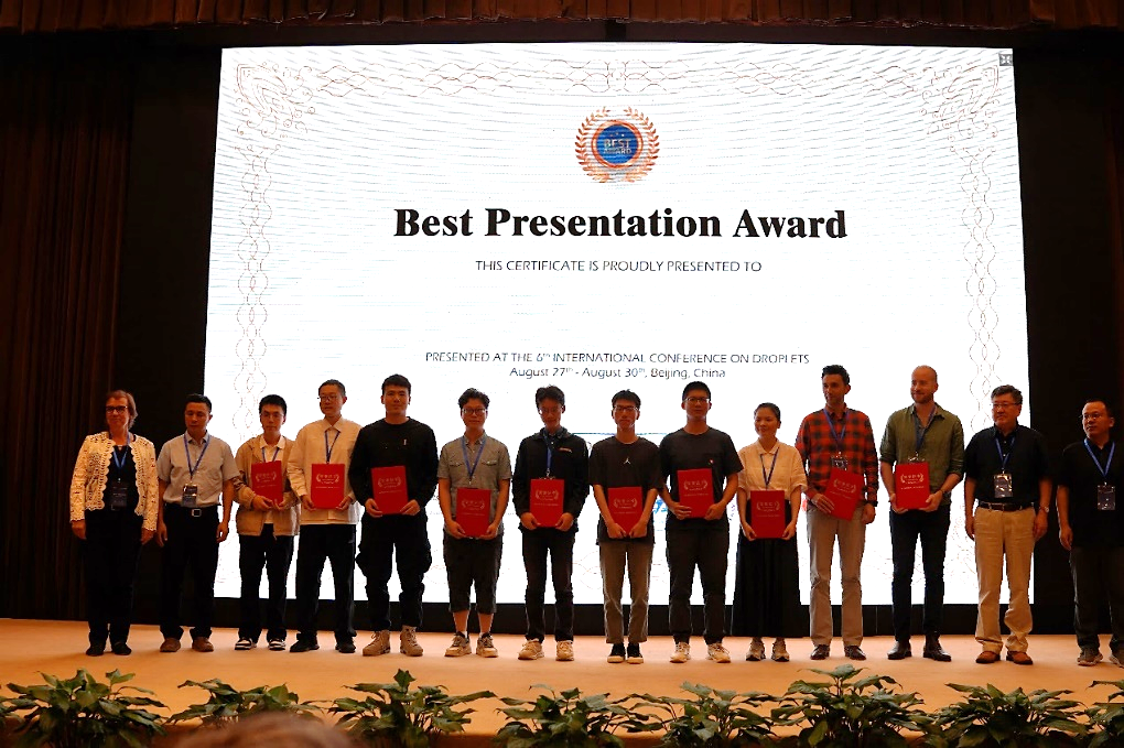 经过专家评选,大会闭幕式颁发了最佳报告奖(Best Presentation Award),10名学生和5名青年学者获得该奖项。经液滴国际科学委员会讨论决定,由液滴系列会议主席Doris Vollmer教授宣布,下一届液滴大会将于2025年在比利时召开。